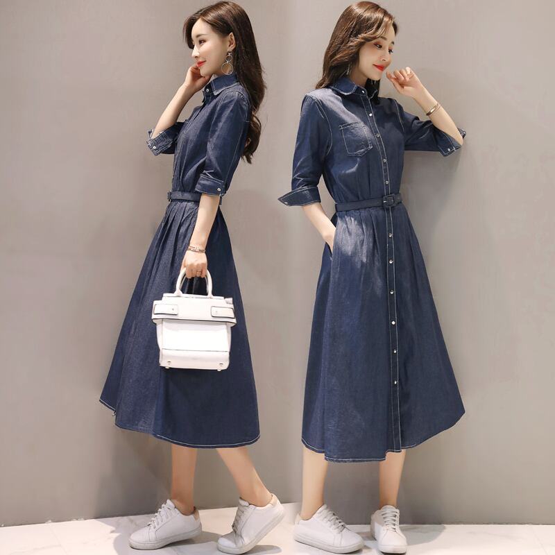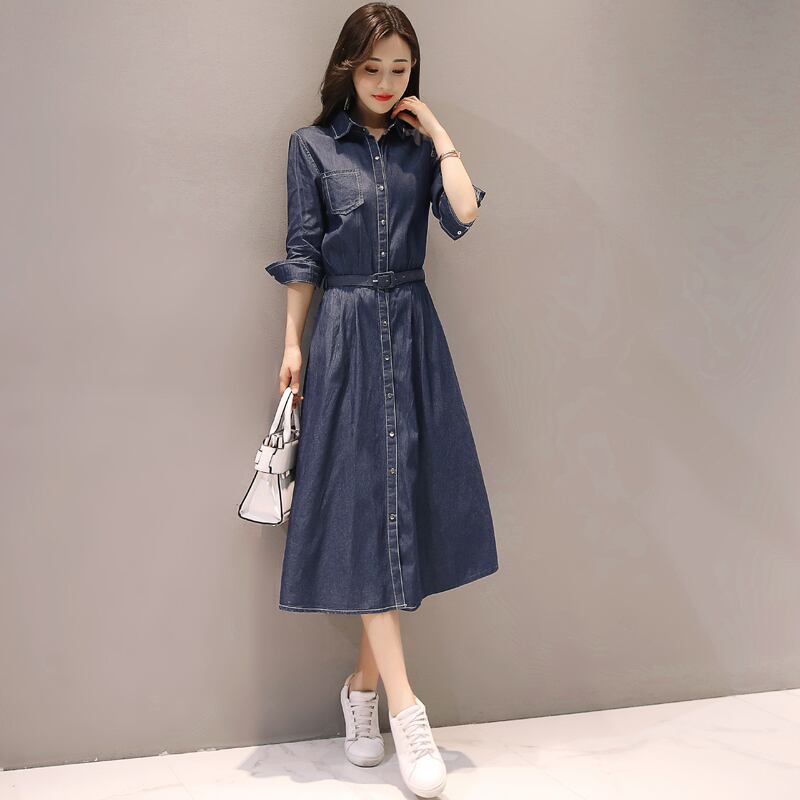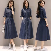 《入荷待ち》デニム シャツワンピース フレア ミモレ丈 ミディ丈 長袖 カジュアル 大人可愛い プリーツ