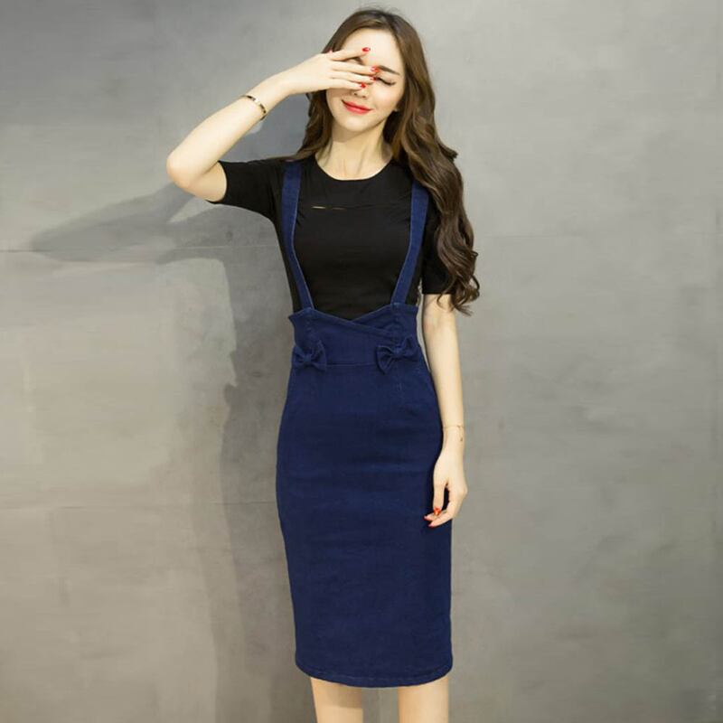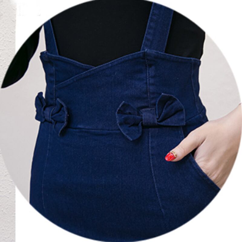 《再入荷》サロペット ジャンプスーツ タイト デニム 大人可愛い リボン 膝下 ハイウエスト カジュアル 20代 30代 レディース