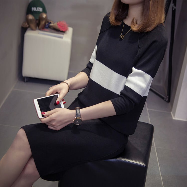 《入荷待ち》大きいサイズ ニット セーター セットアップ ツーピース 長袖 タイト ラウンドネック カジュアル 大人可愛い オシャレ こなれ