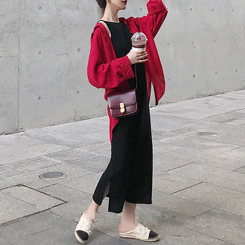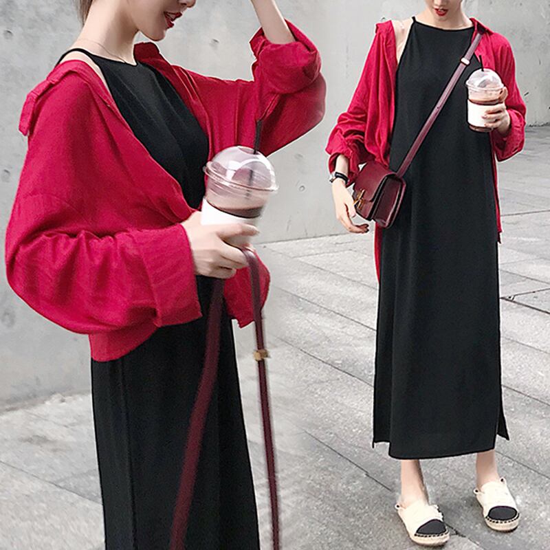 《入荷待ち》セットアップ ツーピース シャツ ワンピース 長袖 ロング丈 スリット こなれ オシャレ 春 夏 秋 楽ちん 大きいサイズ