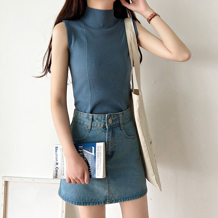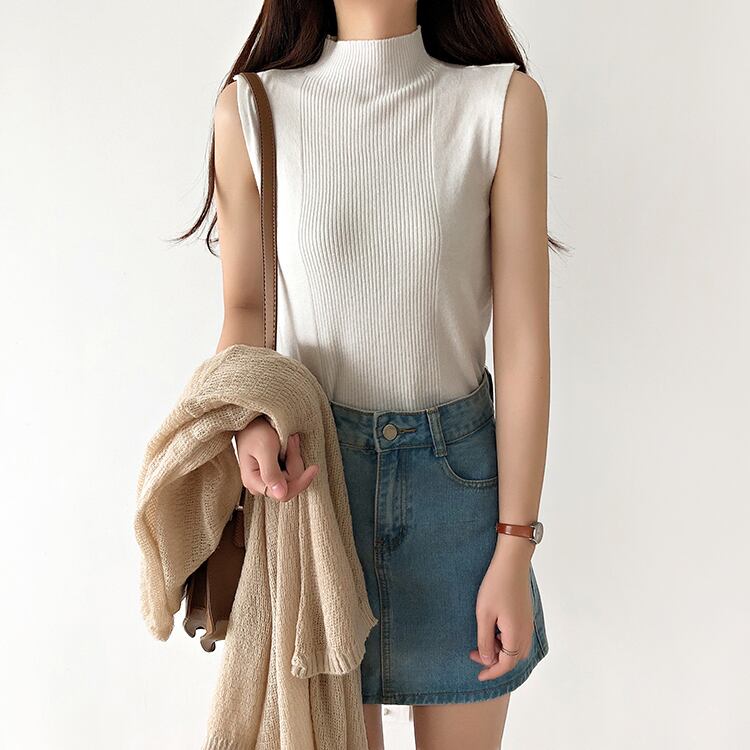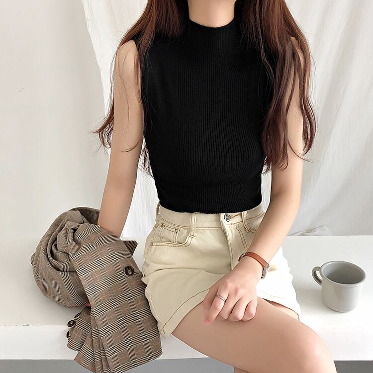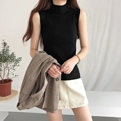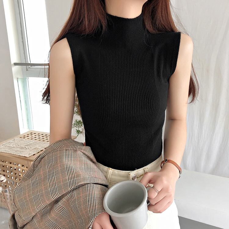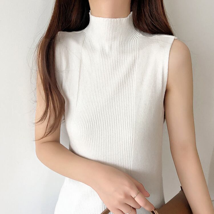 《入荷待ち》タンクトップ 半袖 ハイネック ボトム ニット トップス レディース スリムベスト ノースリーブ