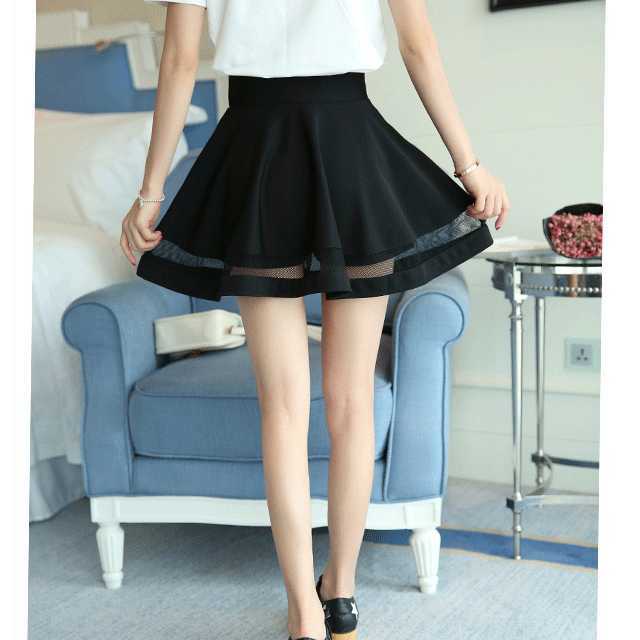 スカート ミニ丈 ブラック 無地 シースルー ウエストゴム 大人可愛い カジュアル シンプル 大きいサイズ