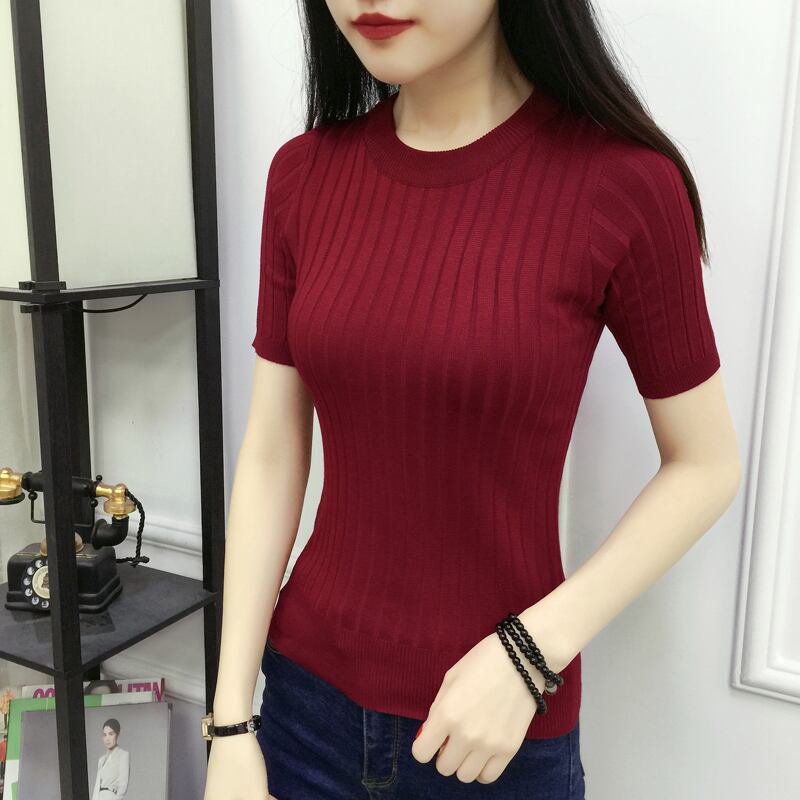 トップス リブニット 半袖 ブラック ホワイト レッド グリーン グレー 大人可愛い シンプル 春 夏