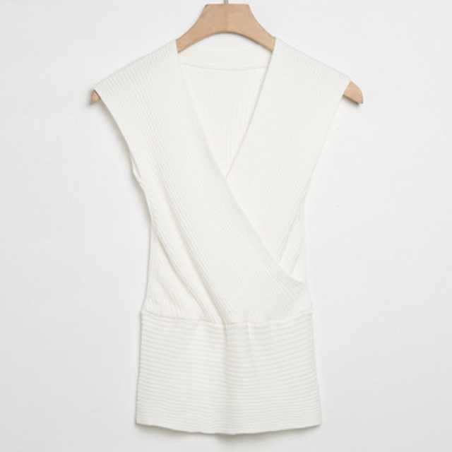 《入荷待ち》トップス リブニット タンクトップ Vネック ネイビー ベージュ グレー ブラック ホワイト 大人可愛い きれいめ 春 夏