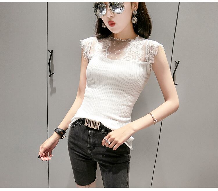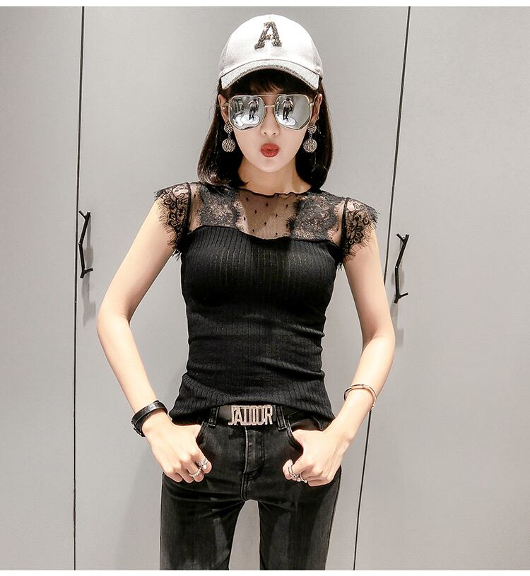 《入荷待ち》フレンチスリーブ 総レース 透け感 サマーニット トップス カットソー 春 夏 リブ 大人カワイイ セクシー