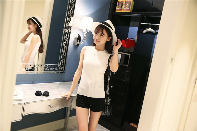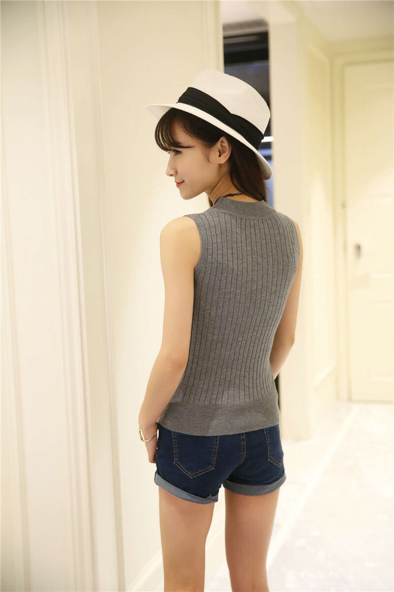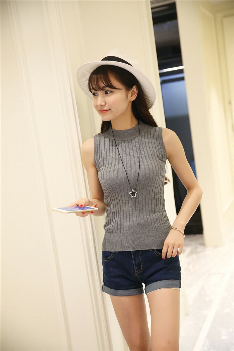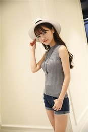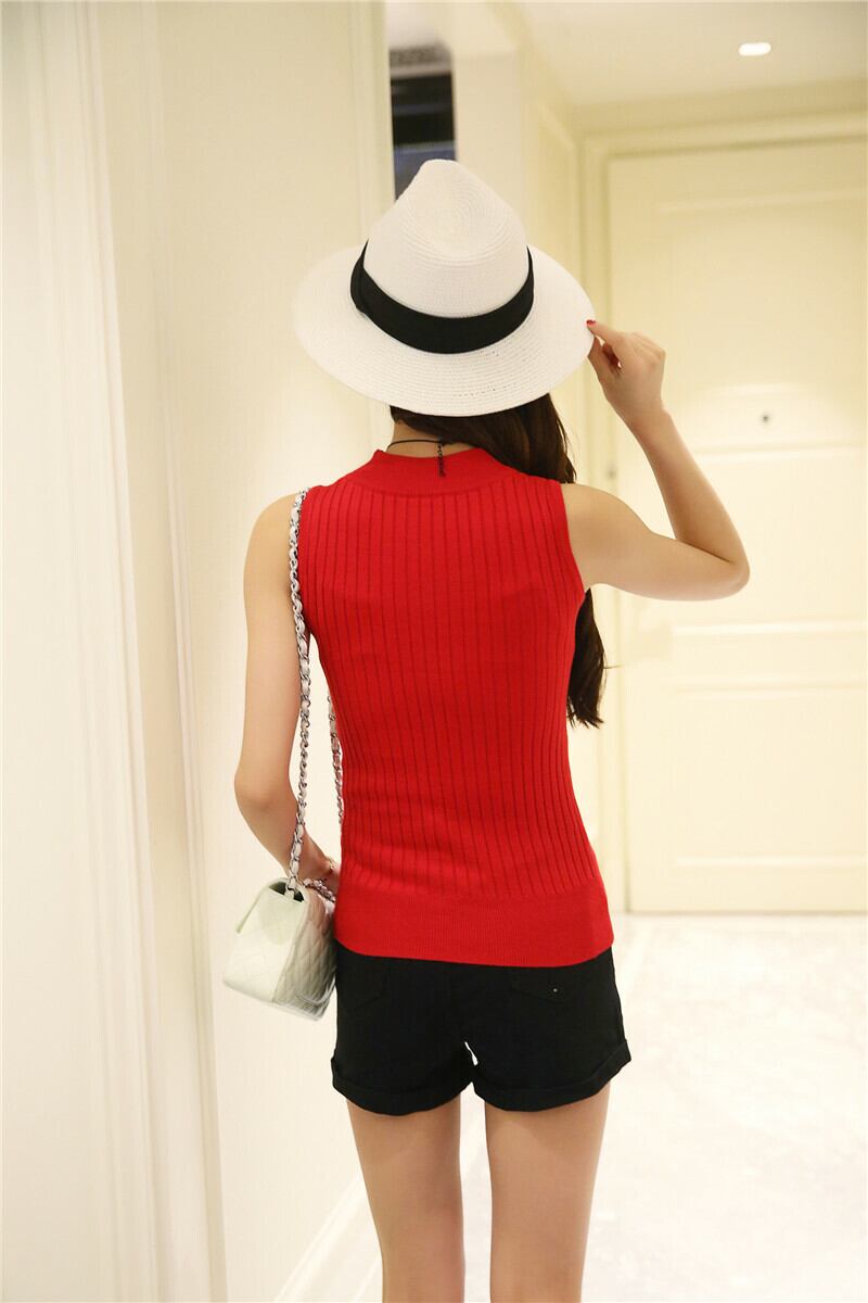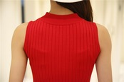 《入荷待ち》サマーニット ノースリーブ トップス ハイネック 太リブ オシャレ セクシー ブラック ホワイト グレー レッド シンプル