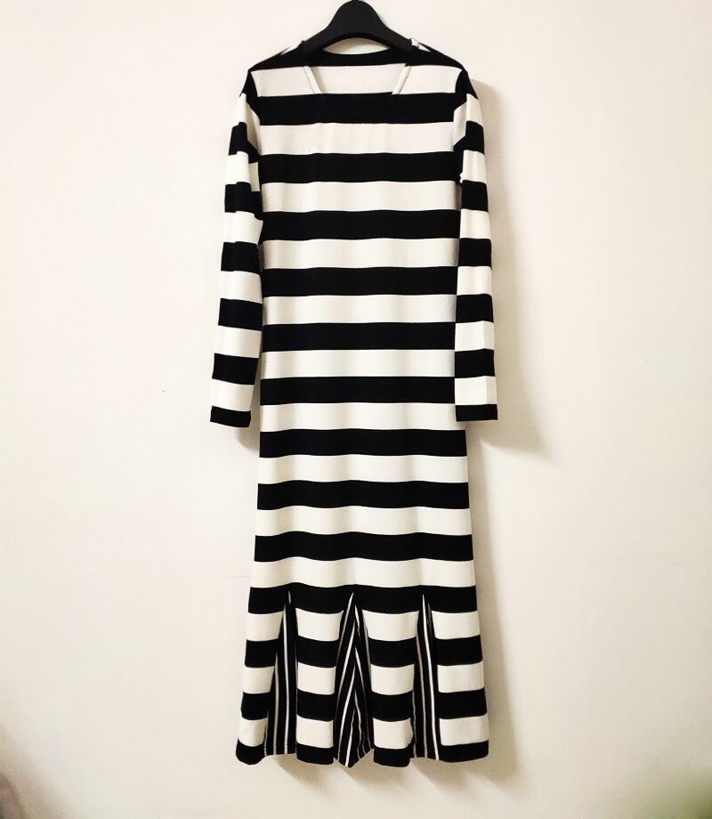 《入荷待ち》ボーダー ワンピース ミディ丈 レトロ オシャレ 長袖 半袖 タイト 韓国 オルチャン 大人女子