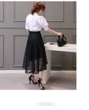 《入荷待ち》スカート 通勤 オフィス 大人女子 総レース ブラック ロングテール フレア ハイウエスト フィッシュテール