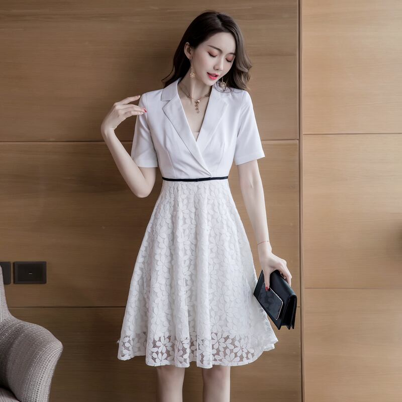 《入荷待ち》ドッキングワンピース カシュクール お呼ばれ デート Vネック 半袖 ハイウエスト ウエストマーク 透け感 フレア