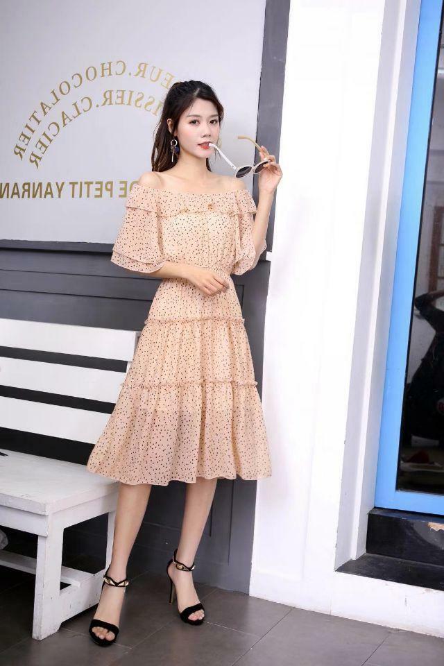 《入荷待ち》シフォン ワンピース 膝丈 オフショルダー 半袖 上品 華やか 大人可愛い フェミニン ガーリー 春 夏 ティアード パステルカラー 花柄