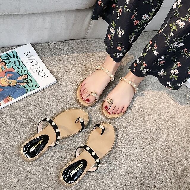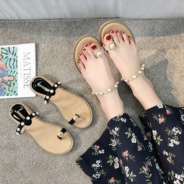 《入荷待ち》サンダル フラットサンダル ベージュ ブラック ビジュー 大人可愛い シンプル カジュアル 春 夏