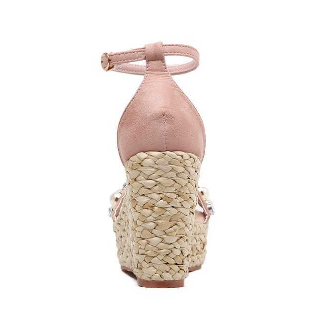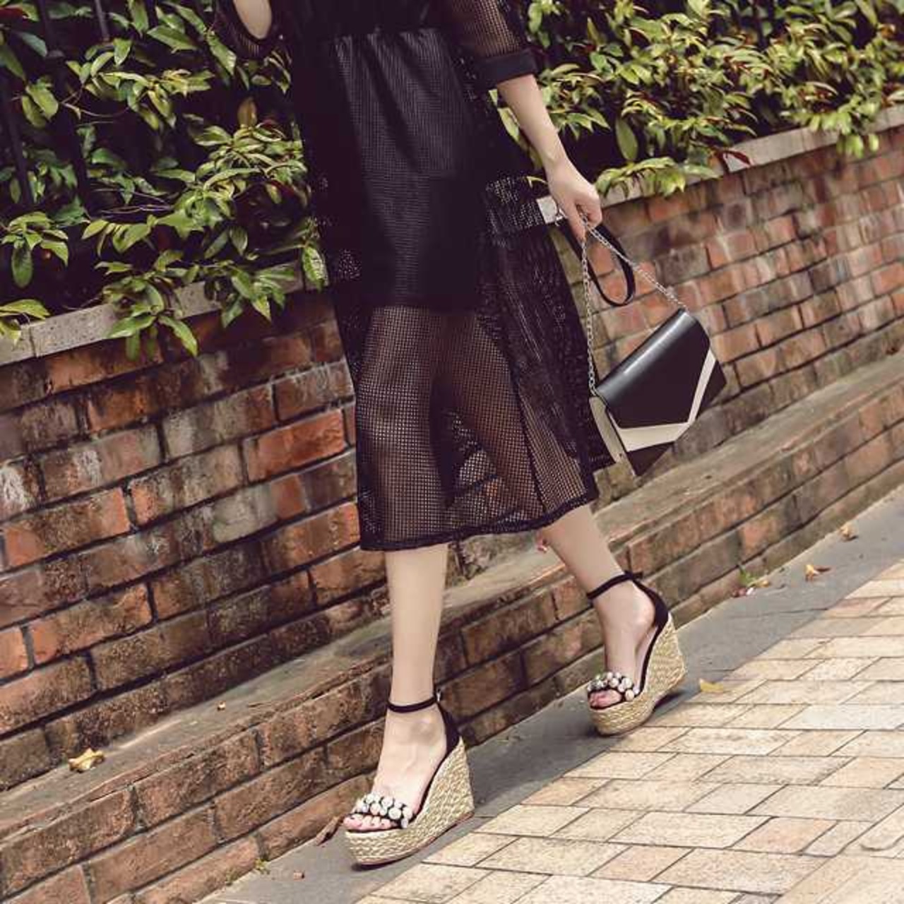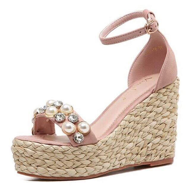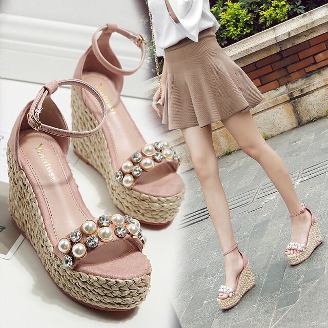 《入荷待ち》サンダル アンクルストラップサンダル ウェッジソール 厚底 ビジュー ピンク ブラック 小さいサイズ 大人可愛い 春 夏