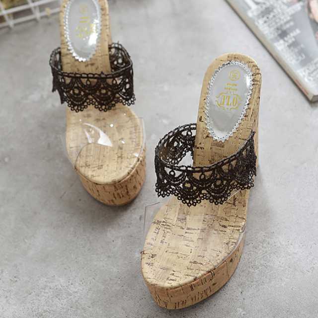 ≪入荷待ち≫ クリアサンダル ウェッジソール 厚底 レース ホワイト ブラック トレンド 小さいサイズ フェミニン 春 夏
