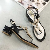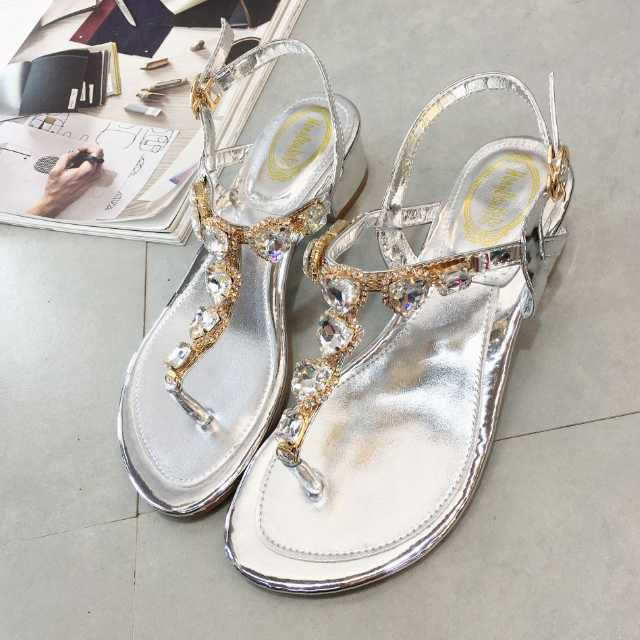 ベルト部分にキラキラのストーンを施した華やかな印象のサンダルです。