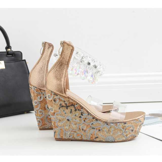 《入荷待ち》サンダル クリアサンダル ウェッジソール ビジュー ゴールド ブラック 大人可愛い 小さいサイズ