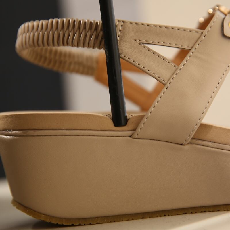 シンプルなデザインながらも、ベルト部分にあしらったビジューがこなれ感を演出してくれるプラットフォームサンダル。