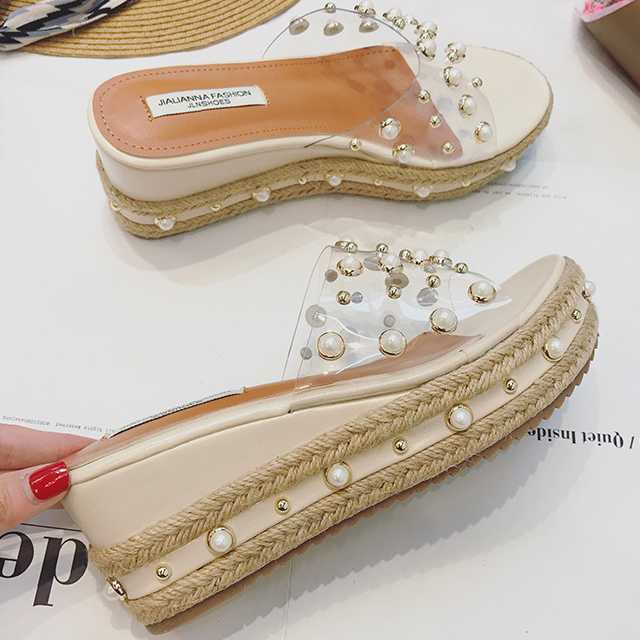《入荷待ち》クリアサンダル プラットフォームサンダル ウェッジソール ビジュー ベージュ ブラック カジュアル シンプル 春 夏