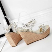 《入荷待ち》サンダル クリアサンダル アンクスルストラップ ウェッジソール ビジュー シルバー ゴールド 大人可愛い フェミニン きれいめ 小さいサイズ