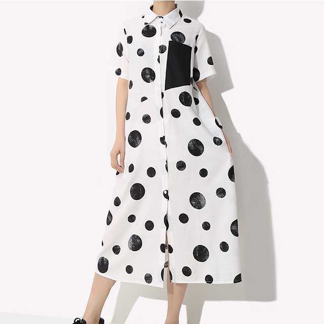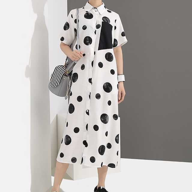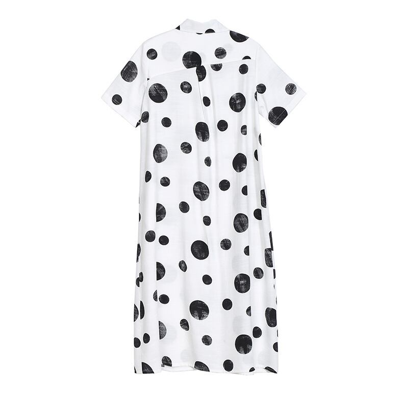 《入荷待ち》ワンピース シャツワンピース 半袖 ポルカドット ホワイト ブラック こなれ感 春 夏
