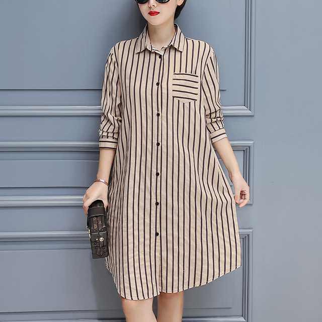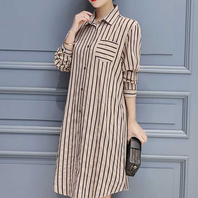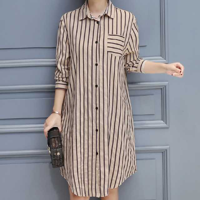 ≪入荷待ち≫ ワンピース シャツワンピース ストライプ 長袖 ベージュ 大きいサイズ カジュアル シンプル こなれ感 ボーダー 膝丈 チュニック