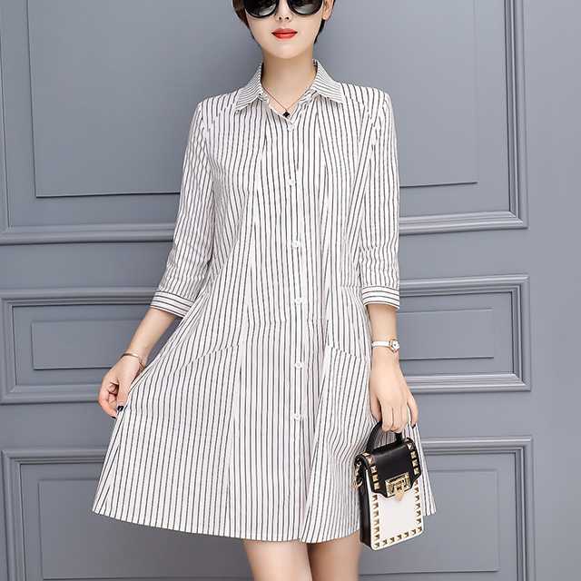 ワンピース シャツワンピース ストライプ 七分袖 チュニック丈 シンプル きれいめ カジュアル 大きいサイズ オルチャン 大人女子