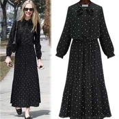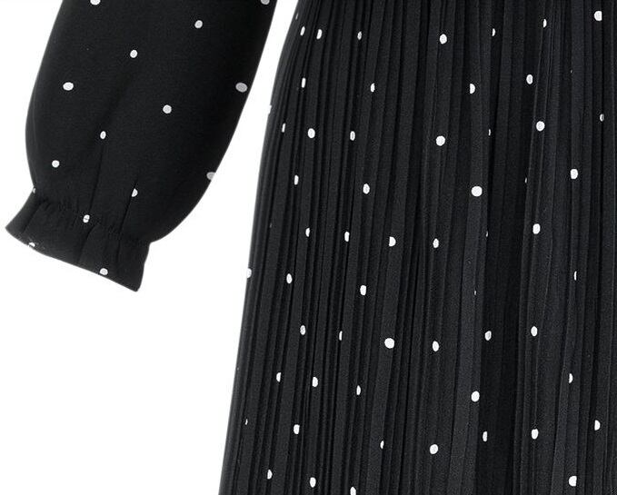 ワンピース ドット柄 長袖 ロング丈 ブラック 大きいサイズ シンプル フェミニン トレンド レトロ マキシ 大人女子