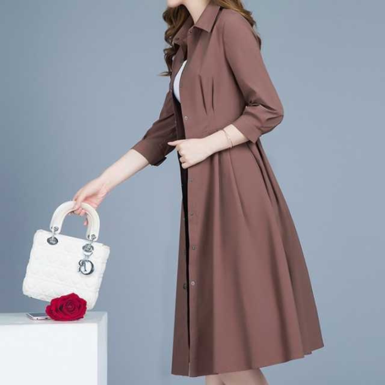 1枚でワンピースとして着るのはもちろん、フロントのボタンをすべて開けシャツガウンのように羽織りとしても◎