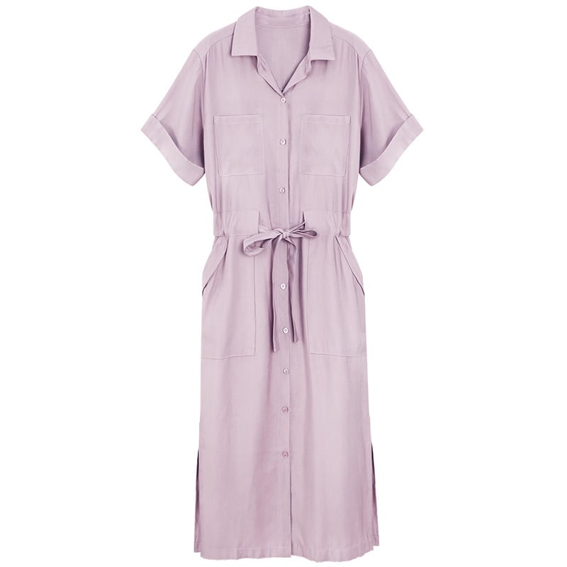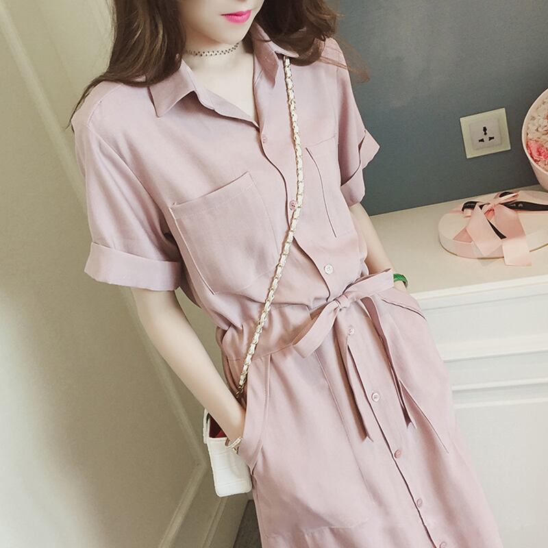 《入荷待ち》ワンピース シャツワンピース ミモレ丈 ロング丈 半袖 ピンク ホワイト シンプル きれいめ 春 夏