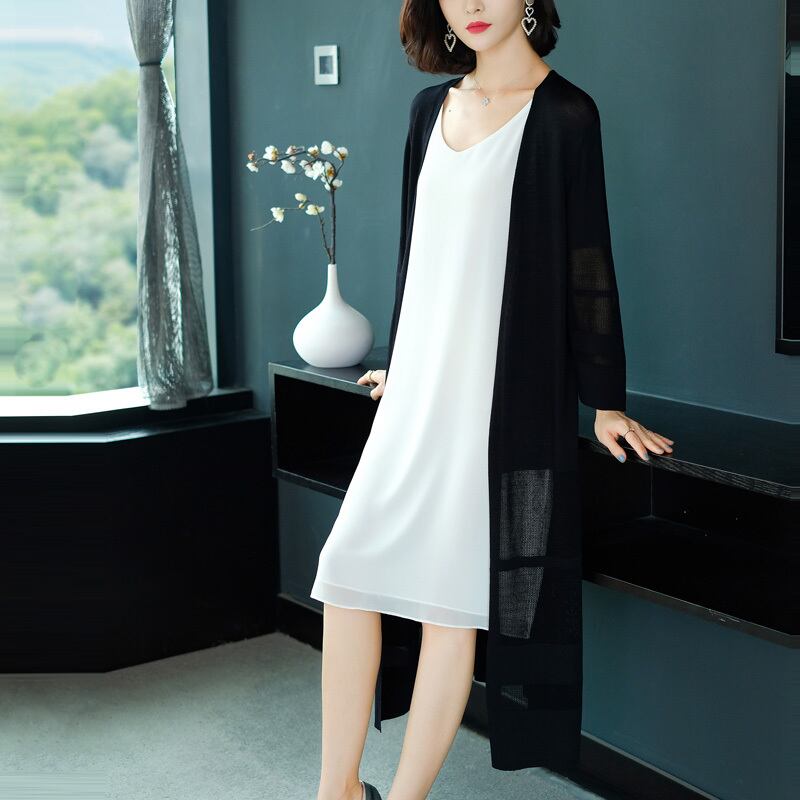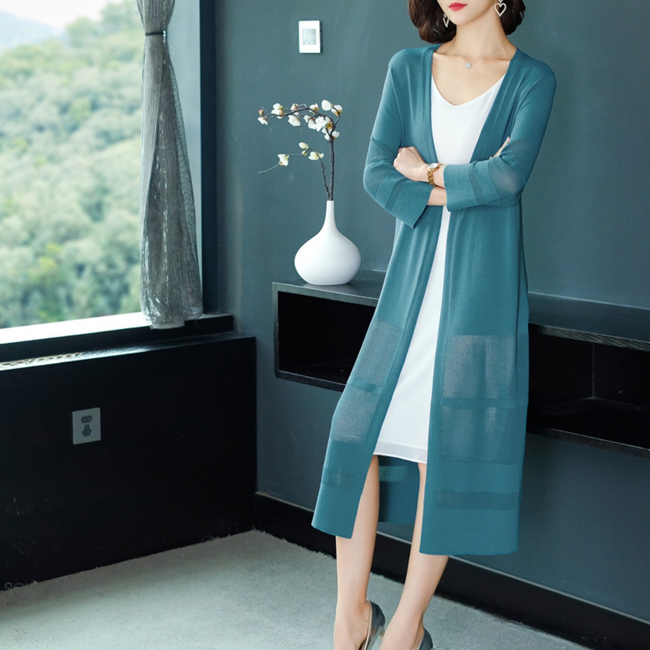 カーディガン ロングカーディガン 透け感 薄手 ブルー ブラック ホワイト ブラウン シンプル きれいめ 大きいサイズ サマーカーデ