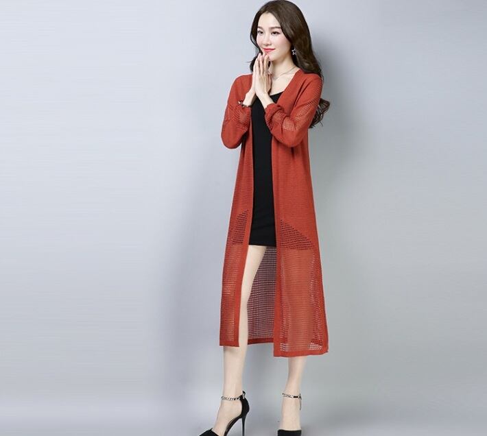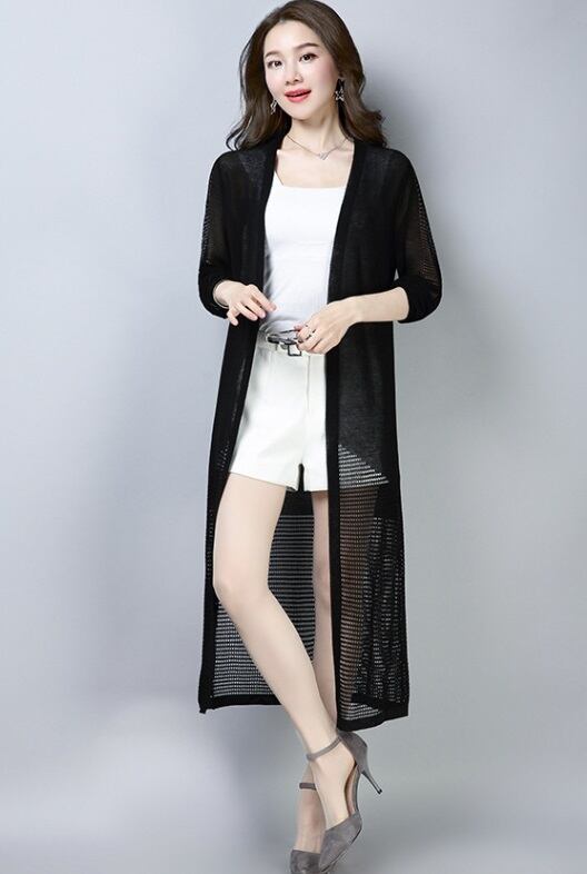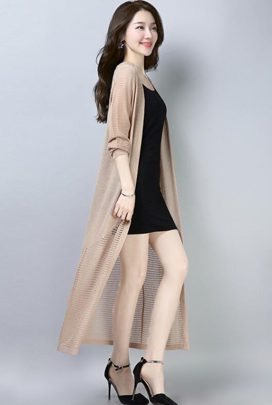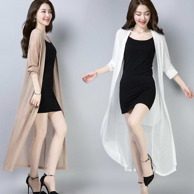 透け感が軽やかさを演出する薄手のロングカーディガンです。