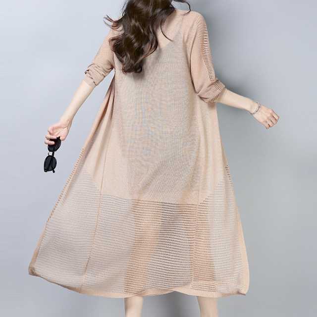 《入荷待ち》カーディガン ロングカーディガン 透け感 長袖 ベージュ ホワイト レッド ブルー ネイビー ブラック シンプル 大人可愛い 大きいサイズ