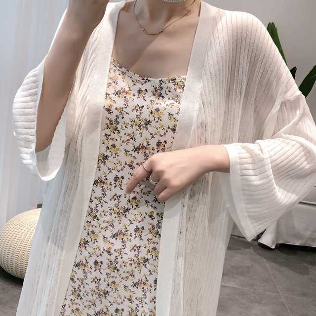 《再入荷》大人女子 カーディガン ロングカーディガン サマーニット 無地 ホワイト ブラック シンプル きれいめ 春 夏 オフィス