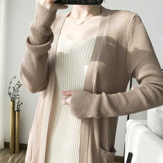 《入荷待ち》サマーカーデ カーディガン ロングカーディガン リブニット 長袖 ベージュ ホワイト ブラック 大人可愛い シンプル きれいめ エアコン対策