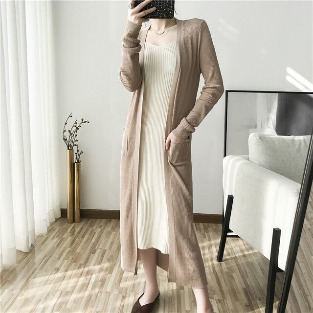 トレンド感のあるリブ編みのロングニットカーディガンです。