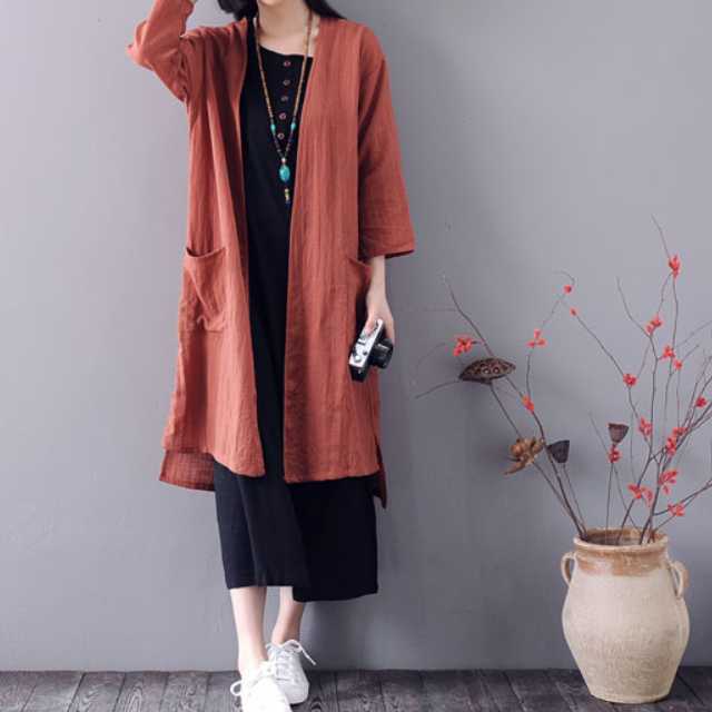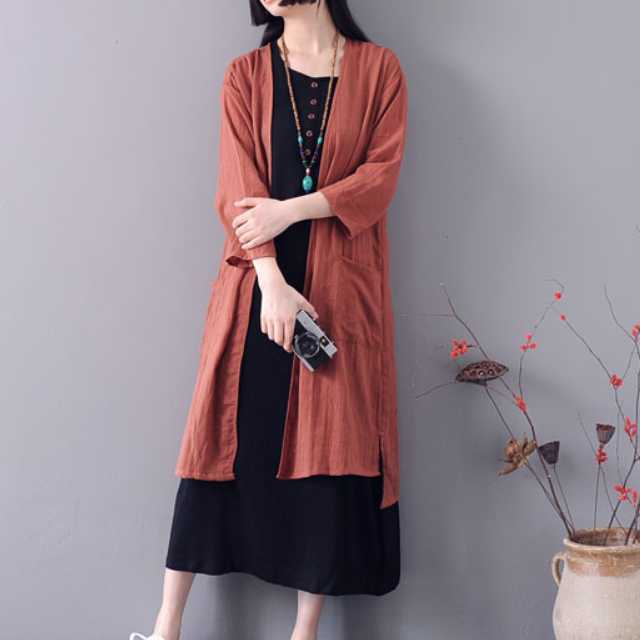 カーディガン ロングカーディガン ガウン リネン混 シンプル ナチュラル サマーカーデ オフィス 大人女子