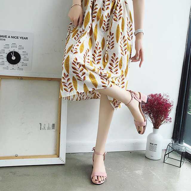 《入荷待ち》サンダル アンクルストラップサンダル ミドルヒール ブロックヒール リボン ピンク ブラック カーキ シンプル フェミニン カジュアル 小さいサイズ 大きいサイズ