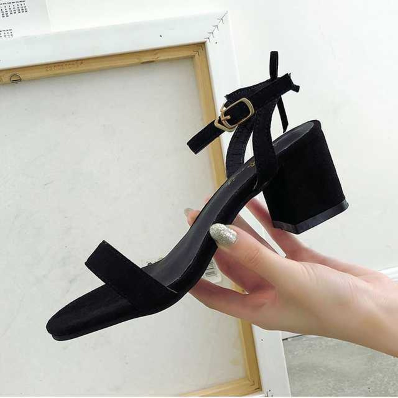 トレンド感のあるブロックヒールのアンクルストラップサンダルです。