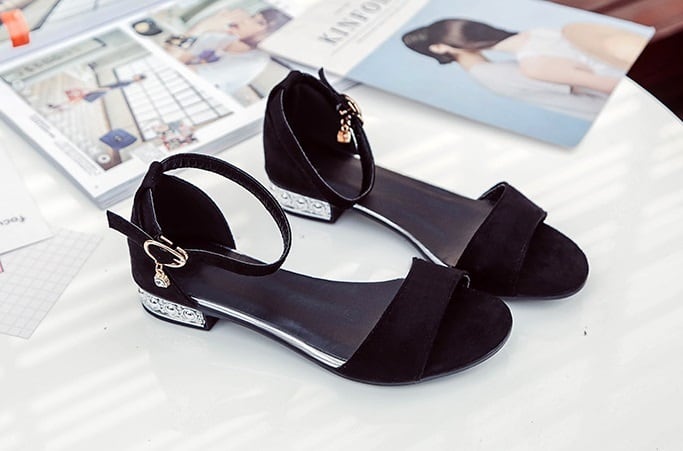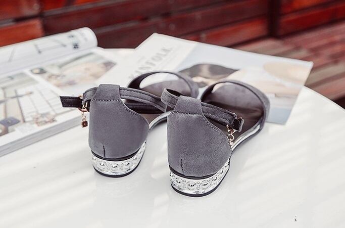 即納 在庫一掃売り尽くし特価 サンダル フラットサンダル アンクルストラップ チャーム ブラック グレー 大人可愛い シンプル 春 夏 大きいサイズ