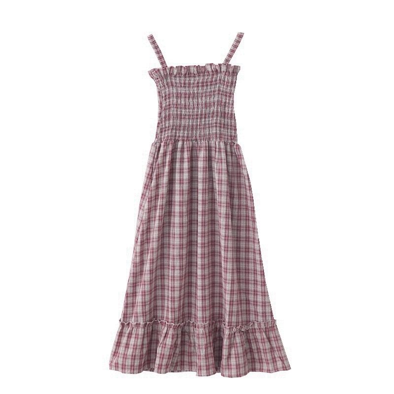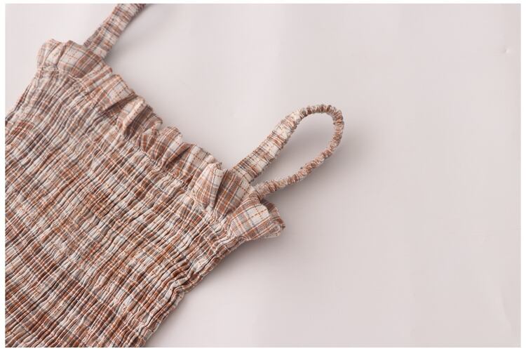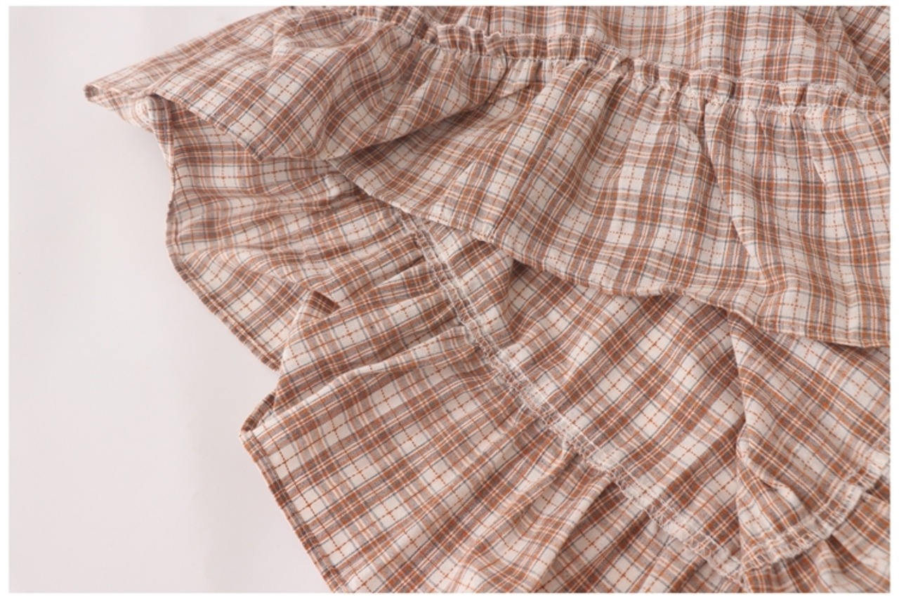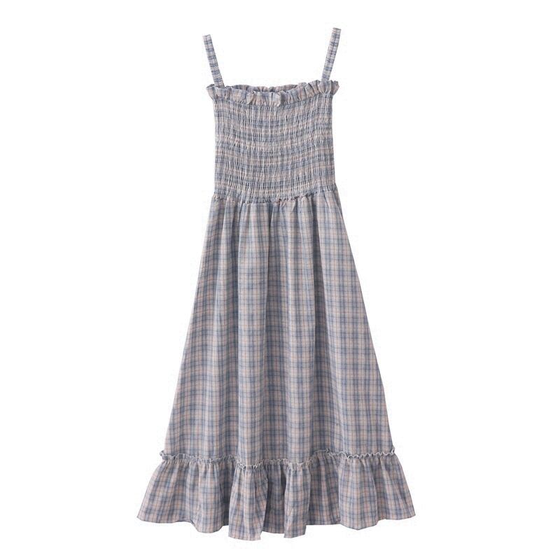 ナチュラル ワンピース レトロ グレンチェック キャミソール ギャザー ティアード フリル ハイウエスト切り替え 大人女子 大人可愛い