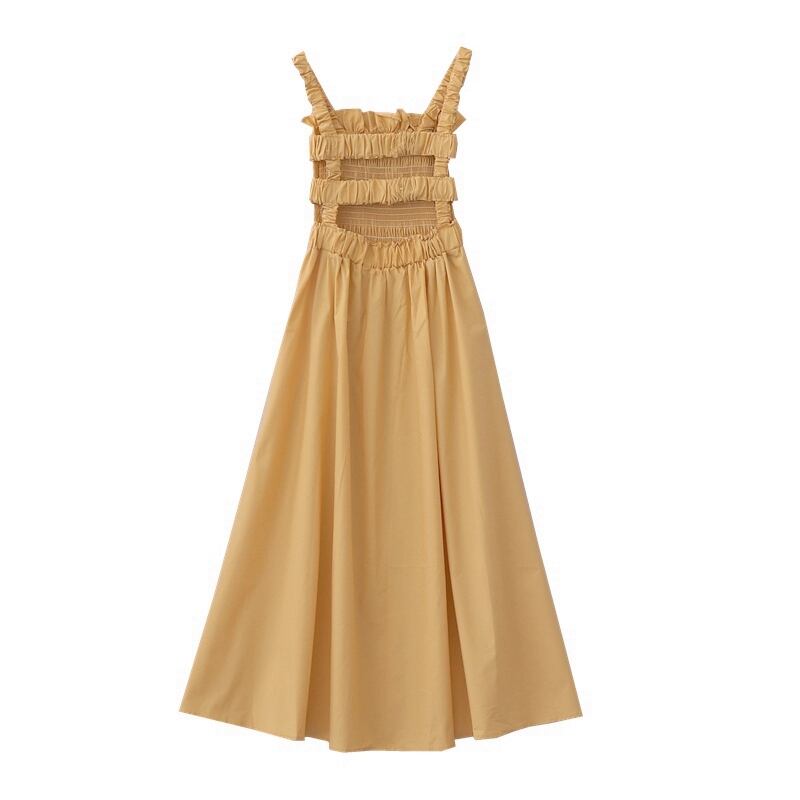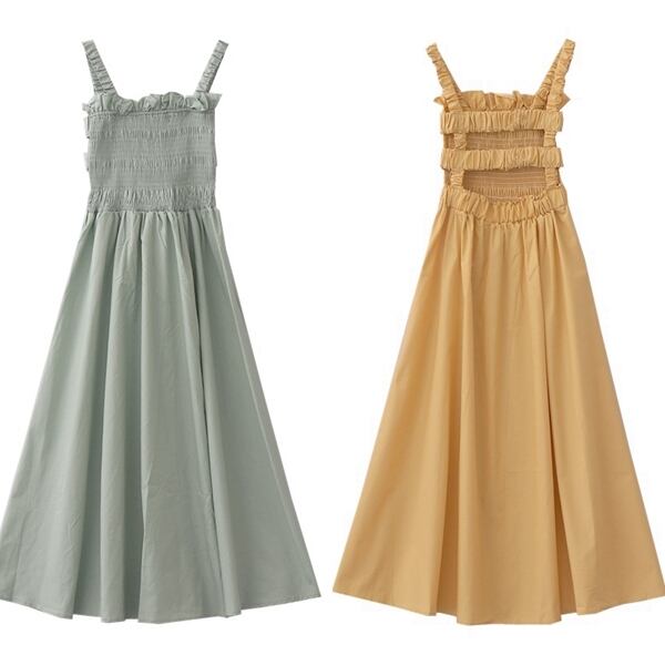 《入荷待ち》バックオープン 夏ワンピ フレア ハイウエスト切り替え ティアード ワンピース キャミワンピース くすみカラー 大人女子 大人可愛い