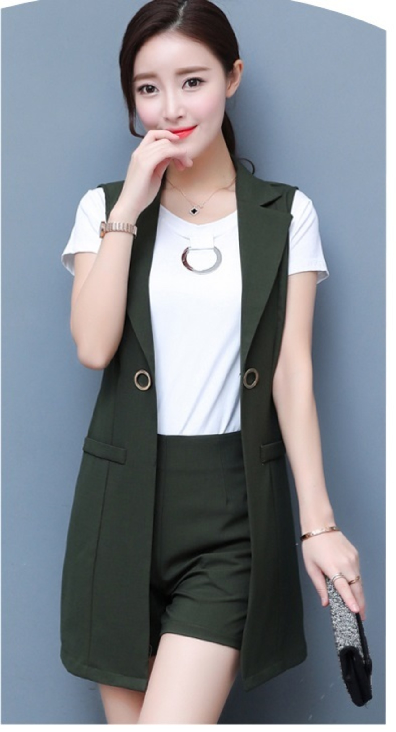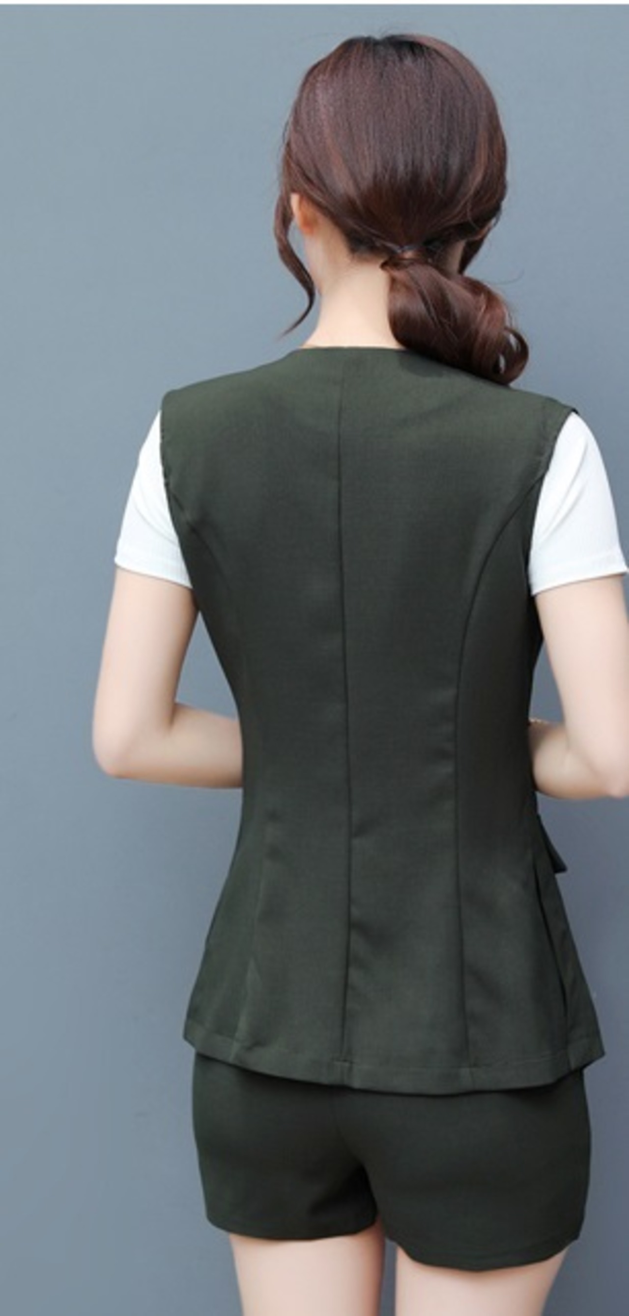 ベストとショートパンツのレイヤードがオシャレなセットアップです♪