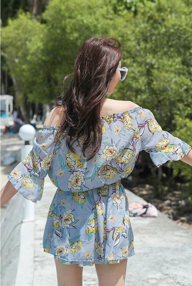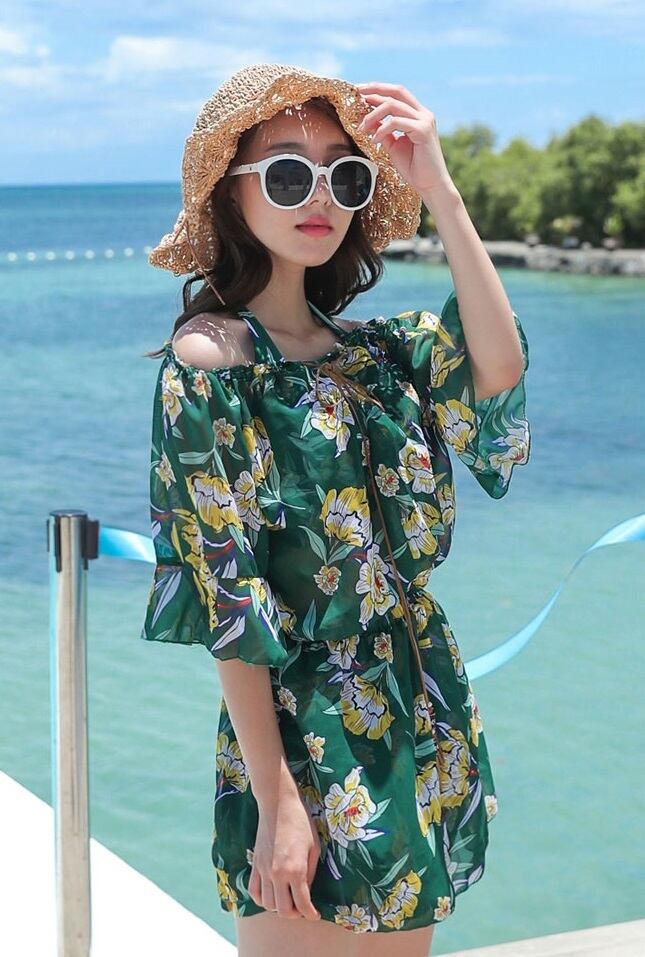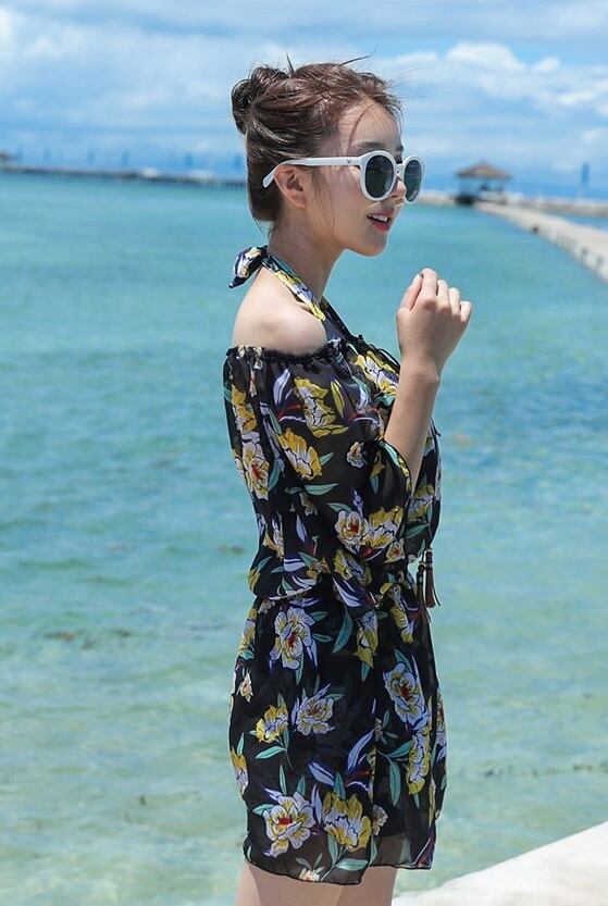 ビキニ スリーピース 2WAY オールインワン オフショルダー ホルターネック ハイウエスト ボタニカルフラワー 花柄 ブラック グレー グリーン 大きいサイズ 夏 海 プール リゾート