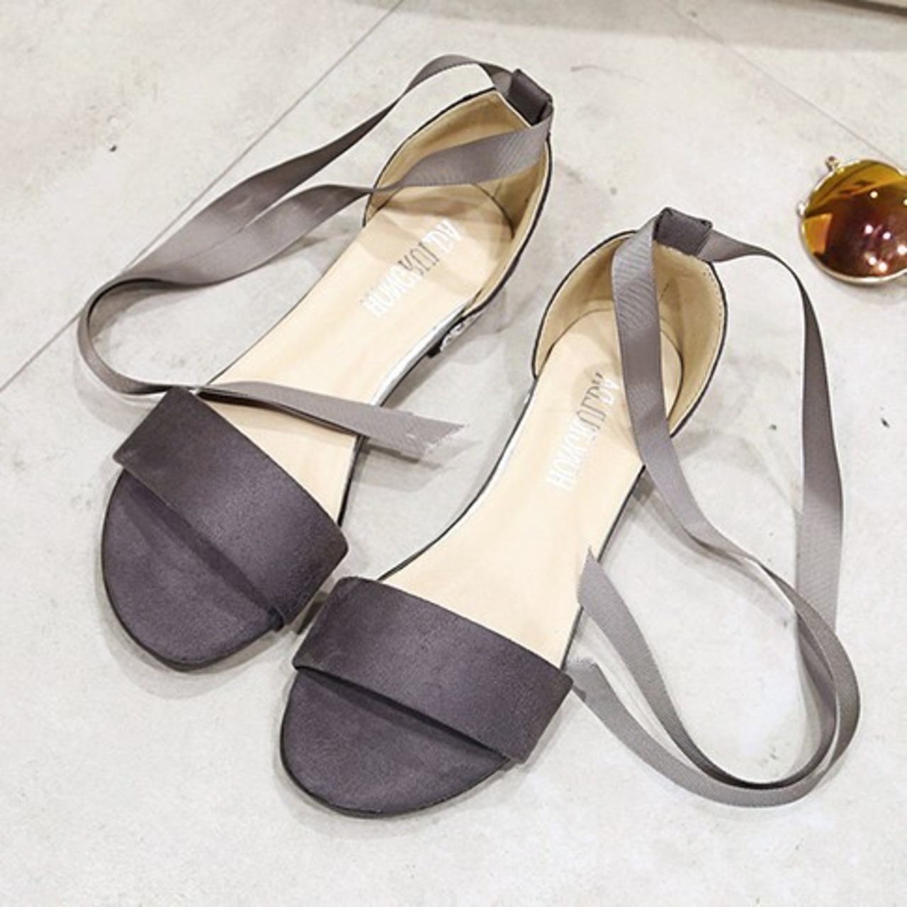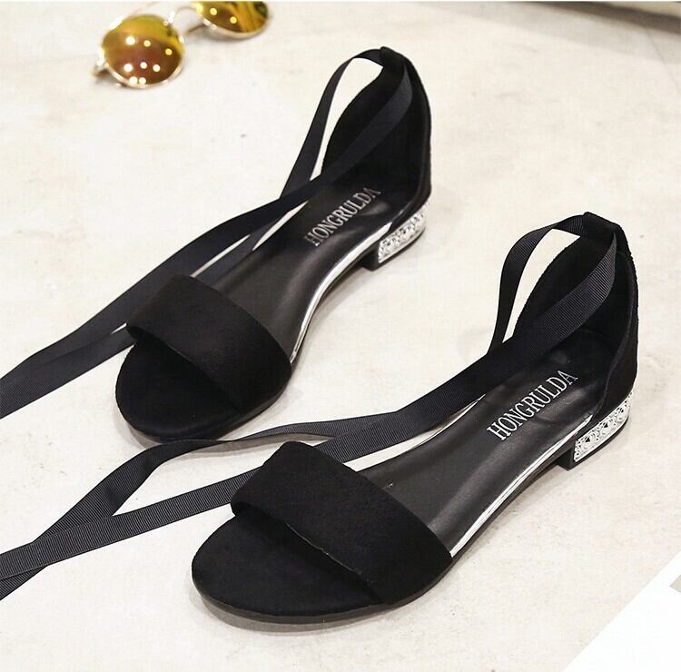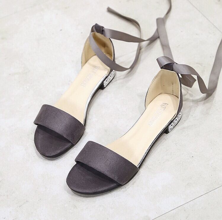 《入荷待ち》リボンストラップ ローヒール サンダル アンクル リボン ブラック グレー 大人可愛い キレイめ トレンド 春 夏