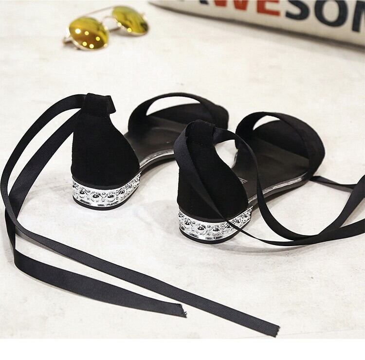 女性らしさあふれるリボンストラップサンダル。