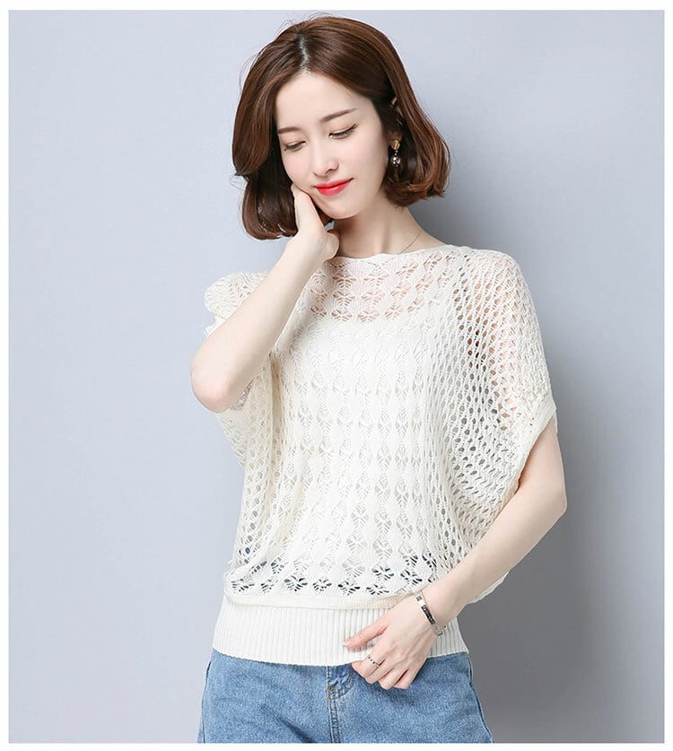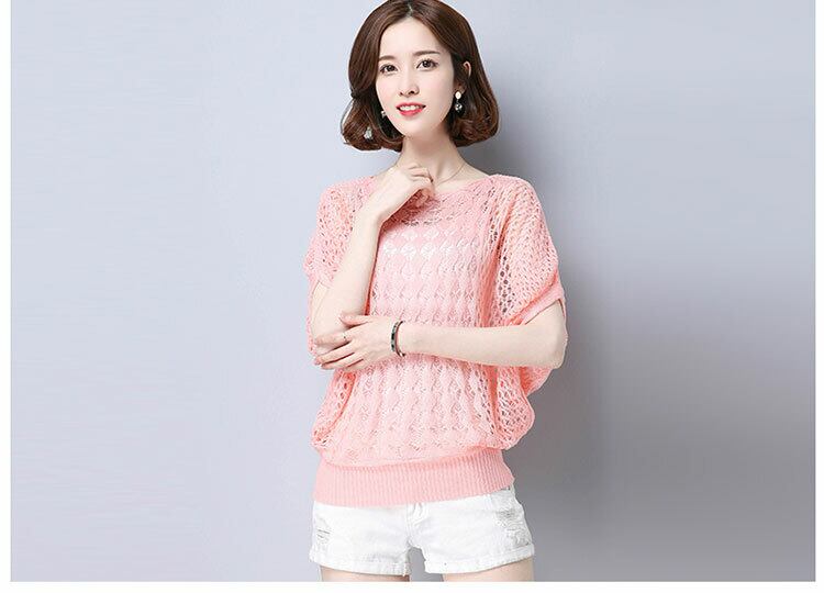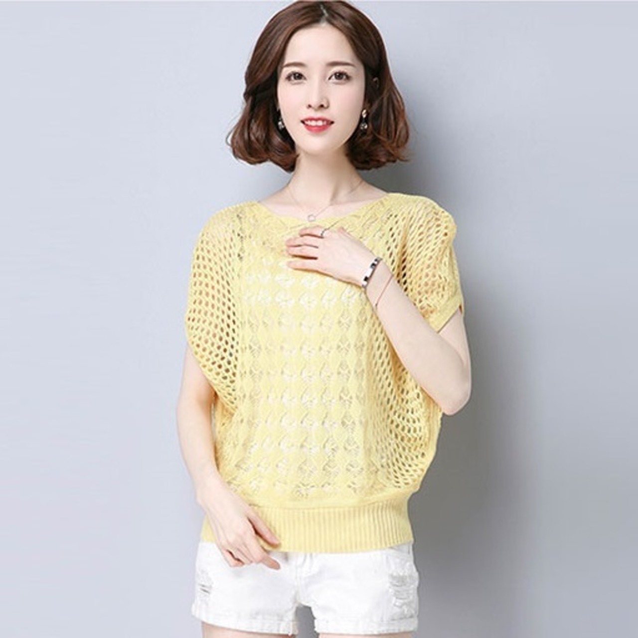 トップス サマーニット レディース 半袖 ゆったり 透かし編み 無地 シンプル イエロー グリーン ブルー ホワイト ベージュ ブラック ピンク