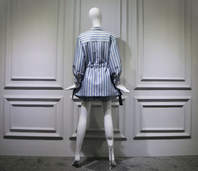 セットアップ ソリッドカラー ストライプ 襟付き 長袖 お洒落 レディースファッション ツーピース 個性的 爽やか