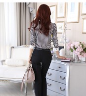 《入荷待ち》エレガント ブラウス 上品 ストライプ柄 シック 大人 オフィスカジュアル 七分丈