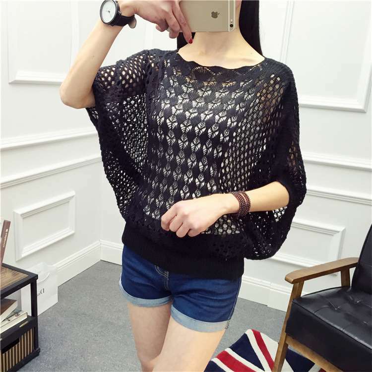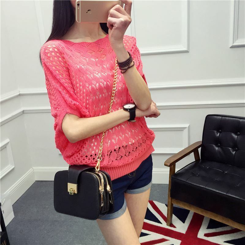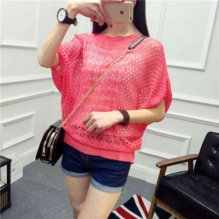 ≪入荷待ち≫ トップス サマーニット レディース 体型カバー 透かし編み 半袖 夏 ゆったり グリーン ブラック ベージュ ピンク ブルー イエロー