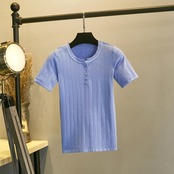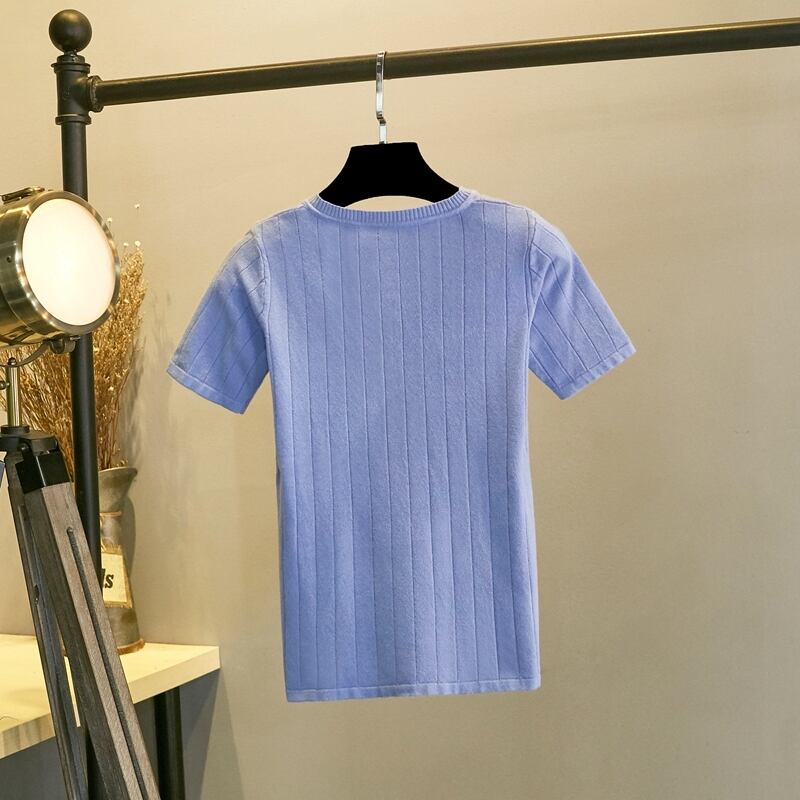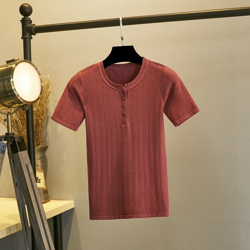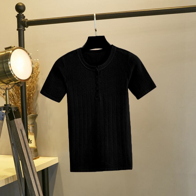 入荷待ち》トップス ニット ショート セーター カジュアル トレンド 半袖 レディース ラウンドネック ブルー ブラウン イエロー ブラック ホワイト オフホワイト