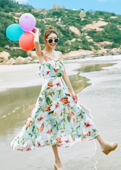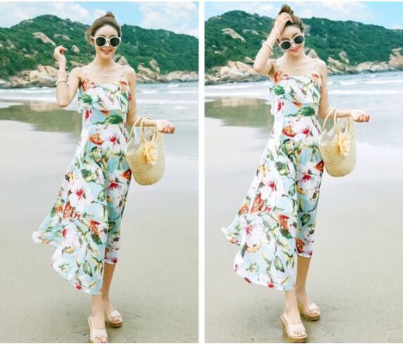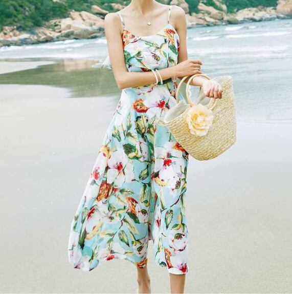 《入荷待ち》ワンピース キャミワンピ ミント フラワー 夏 リゾート ロング丈 新作 ボタニカル 総柄 大人可愛い